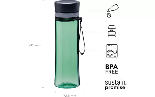 Pure drinking pleasure – the Aveo drinking bottles are made of Tritan and therefore free of harmful substances as well as bisphenol-A and other softeners. The material does not take on any discolouration or odour and can therefore be used day after day for different drinks.