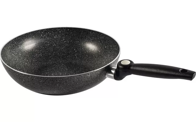 Aluminium pan with a granite look. High-quality, non-stick coating inside. Particularly space-saving thanks to the folding handle.
