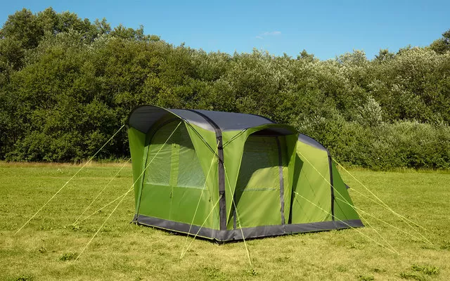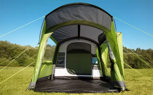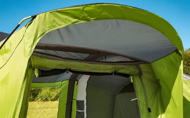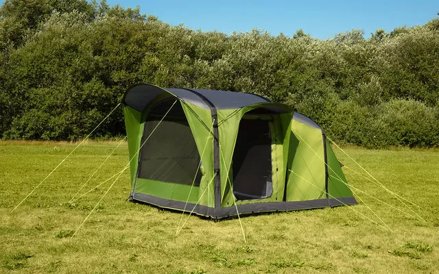 This inflatable tent is quick and easy to set up and offers surprisingly much space and storage space thanks to its two entrances, the vestibule with standing height and practical organizer on the inner tent. The awning can be erected with a fiberglass pole, while the integrated air pole inflates within minutes. The tent offers space for 3 people, making it ideal for small families, couples or a short trip with friends.