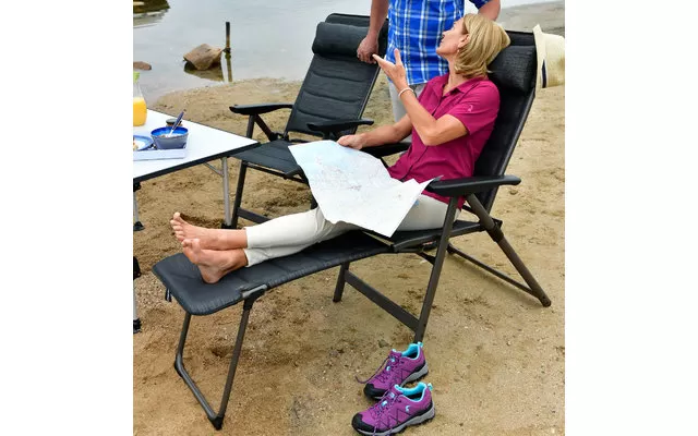 The padded cover and the head cushion round off the seating comfort optimally. The particularly flat pack size is also one of the convincing qualities of this chair. The cover has a durable and easy-care surface. The aluminum oval tube frame is particularly stable and lightweight. The small pack size and the aluminum oval tube ensure a minimal weight of 6 kg, and that with a load capacity of 120 kg.