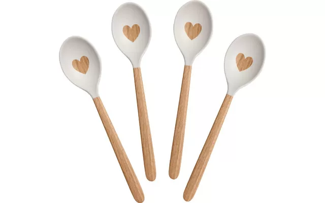 Egg spoon with high-quality wood-look decor on the handle and heart motif on the spoon.