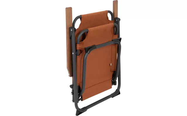 A classic and very compact folding chair with a modern industrial look. A chair that combines style, comfort and functionality. Equipped with a Cationic upholstery, a lightweight aluminum frame and teak armrests. An ideal chair for the garden or camping, but also on the balcony and in the living room. Furthermore, this chair is equipped with additional stabilizers and a safety device against accidental folding. Folds compactly and is easy to take with you.