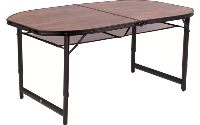 With the help of adjusting screws, the table legs can be adapted to an uneven surface. The legs are adjustable in 3 different heights (55 cm / 65 cm / 70 cm). In addition, the table can be stored very compactly as a suitcase model due to the removable legs and a divisible table top. In addition, the table is equipped with a storage net under the table top to store items and a handle that makes it easy to carry the table.