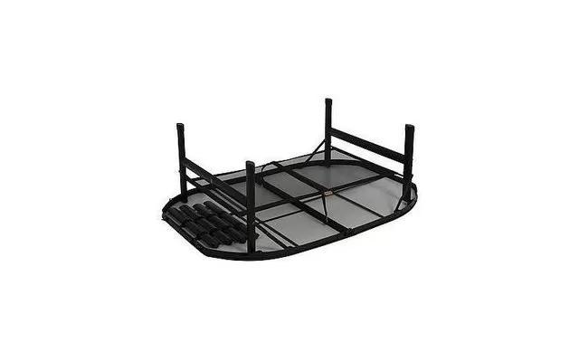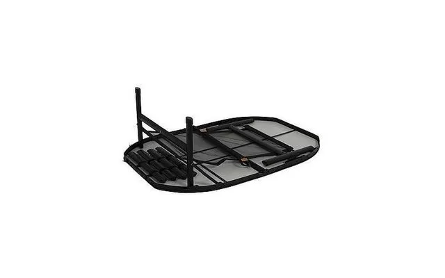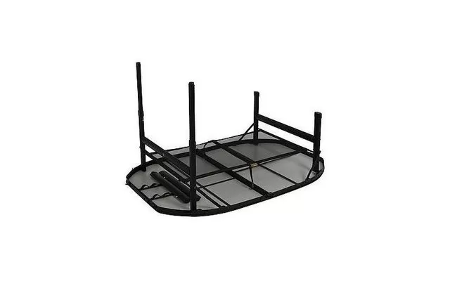 A stylish oval aluminum table in industrial look with a table top in concrete look. Adjustable screws can be used to adjust the table legs to an uneven surface. In addition, the removable legs and a divisible table top make the table very compact to store as a suitcase model. In addition, the table is equipped with a net under the MDF tabletop to store things and a handle that makes it easy to carry the table.