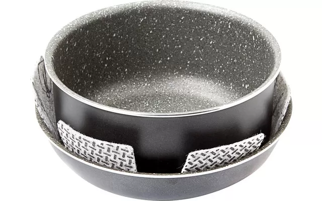 Secures pots and pans while driving – a functional solution for all leisure vehicles and boats. Simply stack all parts into each other and press the lid in – it holds!