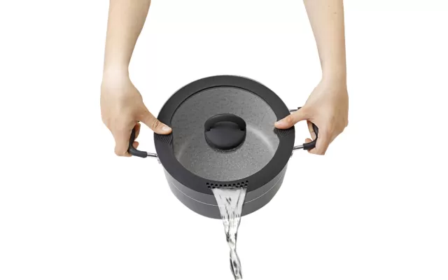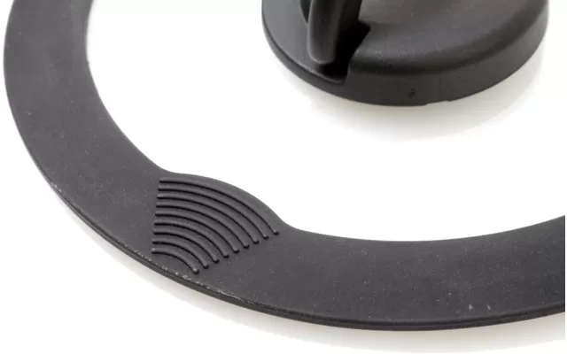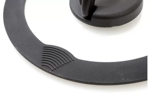 Glass lid with silicone lärmschutzrand with sieveöfnung and slot for attaching the handle tongs.