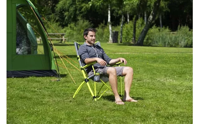 - Features: interwoven bungee cords, fabric covered armrests, cup holder, carrying bag included (polyester)