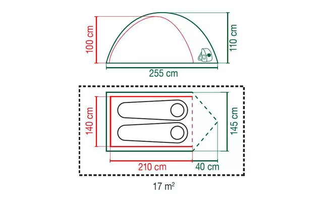 The water column of 4500 mm guarantees a dry stay even on heavily rainy days and the possibility of ventilation on the tent prevents stuffy or condensed air.