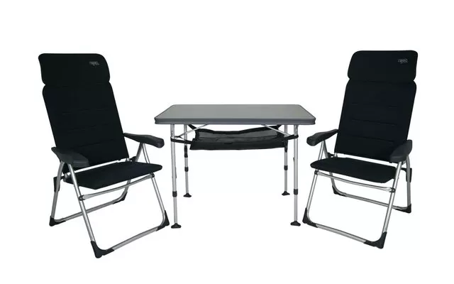 The Crespo set consists of 2 chairs (AA/213-AEC Air-Elite Compact), a table (AA/246), a storage net and a carrying bag. The set is ideal for 2 people, very compact and easy to transport. Includes carrying bag Folded, this set has a diameter of only 18 cm.