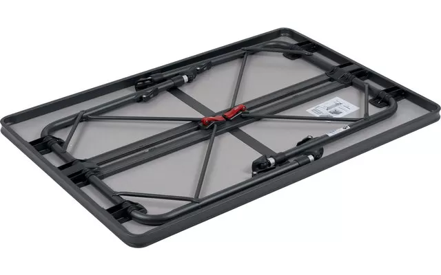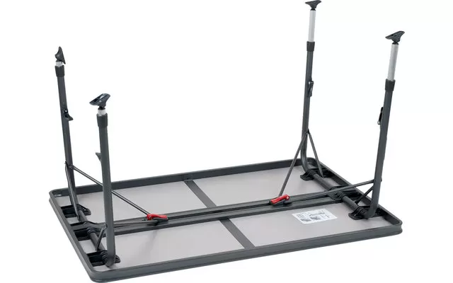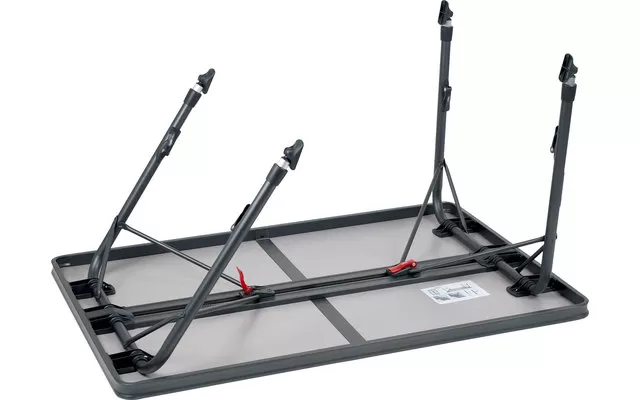 Very stable camping table with high quality. The additional integrated aluminium rails on the underside of the table and robust, reinforced table leg tubes provide extra stability. The table top is heat resistant and waterproof.