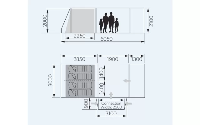 - Rear storage: The generous rear storage area, accessible through the inner tent sleeping areas, facilitates luggage storage