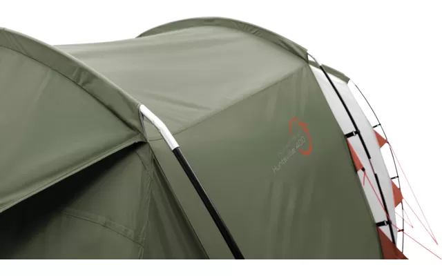 The Huntsville 400 offers space for four people in its spacious inner tent with double door and partition curtain. The tunnel construction comes in sophisticated color combinations and is equipped with pre-curved poles that provide ample headroom. In addition, the tent features a spacious living area with large windows and doors equipped with insect screens, the large rear vent and front vents, along with mesh interior doors, provide excellent air circulation. The roll-up, tub-shaped tent floor, which covers the entire interior surface, can be effortlessly removed and cleaned.