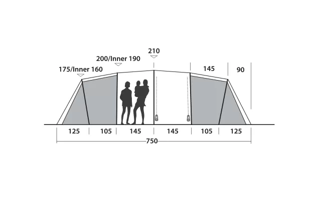 - Total weight of the tent: materials for the flysheet, inner tent, poles and pegs (17.5 kg)