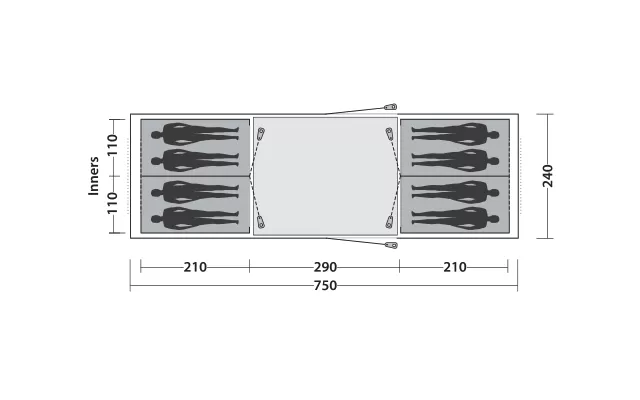 - Fixation for guy line: When packed up, the fixings ensure guy lines do not get tangled or knotted