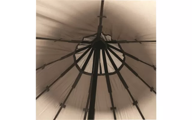 Easy Glamping Moonlight Bell tent is a true classic that with modern materials and expertise transforms into a spacious room for families and friends to share unique moments. Up to seven people can sleep around the high central pole. It’s an airy space to enjoy together, with ample ventilation from well-distributed low vents and a covered roof vent. Mesh windows on the front door and mesh panels with curtains under the eaves make it easy to match the atmosphere to the mood of the campers. Once set up, you can stamp your own style and enjoy!