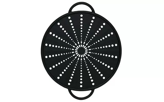 - Multifunctional: splash guard, colander, overcooking protection, trivet, baking tray and microwave cover in one