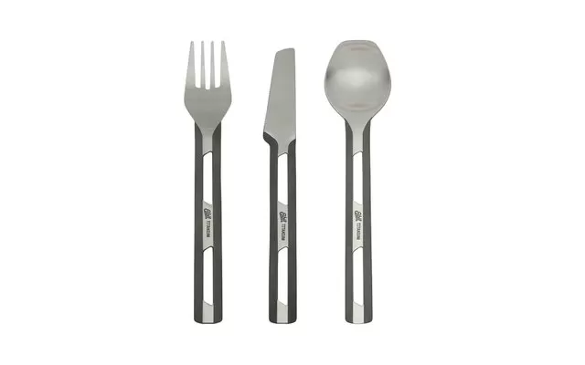 This all-purpose, robust cutlery set made of titanium saves in the right place: on weight, it is extremely lightweight and its unusual design also makes it a visual eye-catcher.