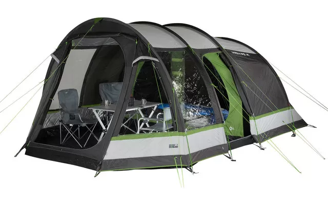 The Bolzano 6.0 offers enough space for 6 people with camping equipment. Perfect for a relaxing family holiday. Family tunnel tent with sewn-in floor keeps moisture, dirt and crawling animals out of the tent. The living area with 2.1m headroom offers space for camping equipment. 2 gauze entrances and 2 permanent vents ventilate the living area and keep annoying insects out. 4 panoramic clear windows flood the living area. Curtains protect from prying eyes. The roof has an aluminium coating and is heat reflective. The High Peak 3-step “Dual Flow” ventilation” in the sleeping area adapts perfectly to any weather situation.