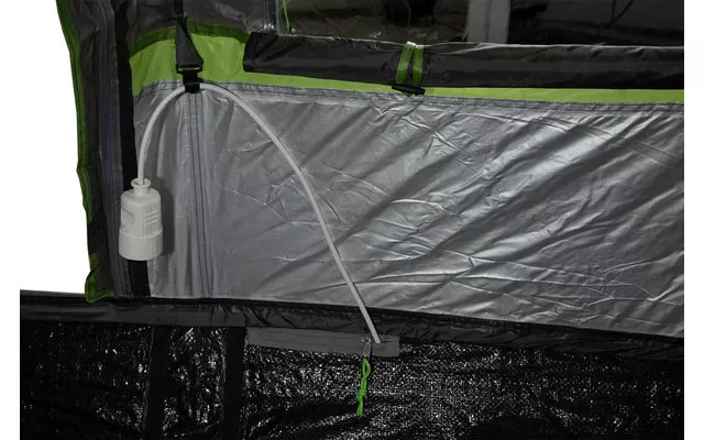 Darkened inner tent with Vario Vent Control System. 2 mosquito net entrances keep annoying pests away and can be conveniently operated from inside depending on the climate. With a zippered partition, the inner tent can be divided into a large cabin or 2 sleeping areas. 5 practical organisers and 5 inner tent pockets for utensils. 2 lamp holders for camping lights round out the convenience.