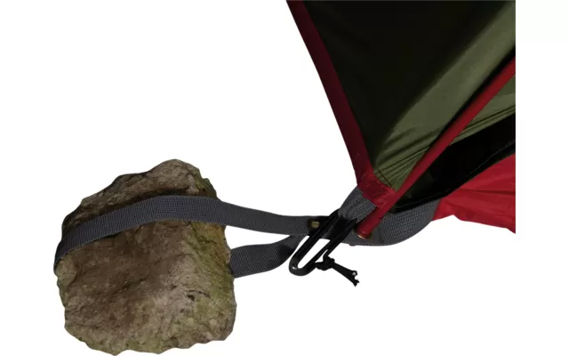 - Extra long fastening lugs for ground anchoring with stones or branches