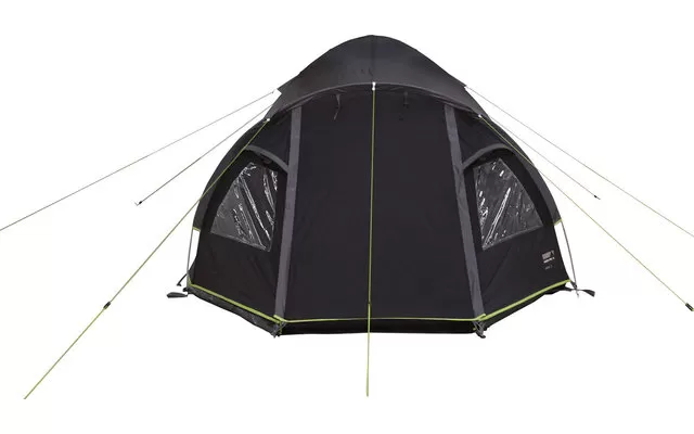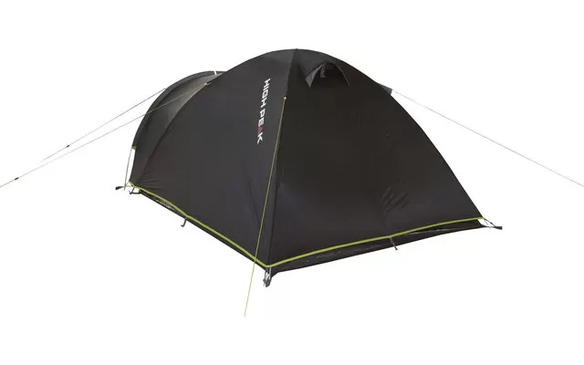 The practical High Peak Talos 4 camping tent offers enough space for four people or three people with luggage in a spacious sleeping area. The stem is equipped with a sewn-in tent floor that does not slip and has decay strips to keep dirt out of the stem. You enter your tent with dry feet through the weather-protected entrance. Clear film windows fill the tent with light. To protect your privacy they can be closed with curtains. Three weatherproof permanent ventilation openings ventilate the tent ideally and should always be open. The door of the inner tent is equipped with a gauze entrance to keep annoying insects out of your High Peak Talos 4. Other features include inner tent pockets and a lamp holder.