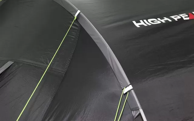 Wind stable Vis a Vis tunnel tent with 4000 mm water column offers space for 6 people. Opposite sleeping cabins for the children’s own kingdom or when friends come to visit. During the day an inner tent can be unhooked to increase the living space. Ideal in bad weather. The entrances with mosquito doors provide optimal ventilation and insect protection. Small camping utensils are quickly stowed away in the 8 organizers and are ready to hand. Lamp holders and 4 inner tent pockets complete the equipment. During the day, an inner tent can be unhooked and increases the living space. Ideal in bad weather. The living area has 2 entrances, light source windows, gauze windows and a separate, easy-care tent floor. The entrance can be used as a sun canopy and provides shade on hot days. The opposite HIGH PEAK Vario ventilators ventilate the tent even in rainy weather and should always be open. The tent has extra strong zippers and reflective guy loops for more safety.