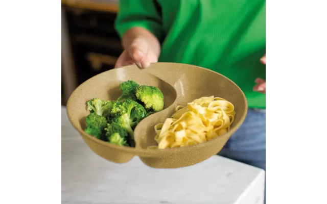 With SEPAREE, the main course and side dishes are appetizingly separated from each other, and thanks to the elegant design, fine fish or meat dishes can also be attractively arranged. The raised rim protects the contents well, yet the plate is flat enough for relaxed dining. SEPAREE is the beautifully designed addition to the CONNECT BOWL series and comes with a matching lid. The plates are sturdy and stackable, and the clever shape is crafted to allow water to drain easily during cleaning.