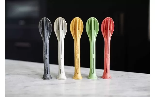 The ideal travel companion: knife, fork, spoon are simply inserted into each other and fit thanks to their compact size in any jacket pocket.