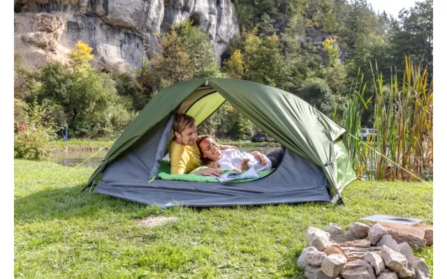 Provides sufficient space for 2 people, even on more demanding trips. The pack size makes it ideal for hiking trips, bicycle or motorbike tours. The geodesic design offers enormous wind stability. Two apses with attachable groundsheet (incl.) offer space for walking shoes and rucksack. Thanks to its construction, the tent can also be erected without a flysheet. Organiser in the inner tent provides a place for tent lamp, smartphone etc! Follow YOUR way…
