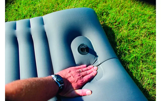 We have introduced an internal manual inflation technology that allows this product to be effortlessly inflated by simply opening the top valve and repeatedly pushing down on the integrated pillow area, or by other traditional oral methods; the other valve is provided to ensure quick deflation