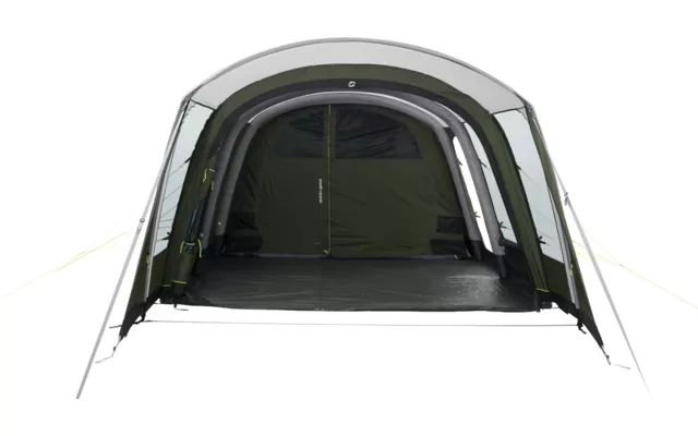 The Avondale 5PA accommodates five campers in two premier sleeping cabins with panoramic views. This makes it ideal for families and friends looking for a flexible tent and practical comfort. A deep canopy with large side windows provides a sheltered outdoor space. The adjacent front wall can also be fully opened. The Rear Ventilation System, a side entrance and the many windows guarantee an airy feeling of space in the tent.