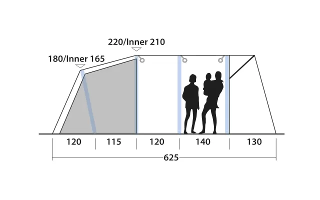 - Vertical front wall with canopy for optimal living space inside and in front of the tent