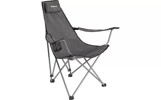 Weather-proof, hard-wearing cover, made of 100% polyester in web structure. Sturdy steel pipe frame. High backrest with comfortable headrest. Drinks holder in the armrest. Incl. packing bag (100 % polyester).