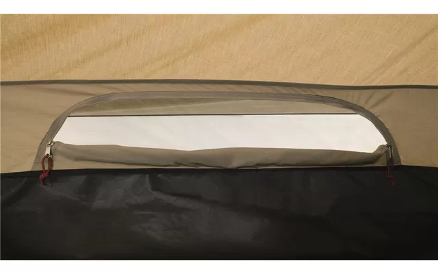 The tent pole is slightly sloped, facilitating access and maximizing the usable interior space, which can accommodate up to seven people. Under the top, it features standing height. The canopy- and mesh-covered vent in the peak, along with the ground vent and separate mesh-covered entrance, provide insect-free airflow.