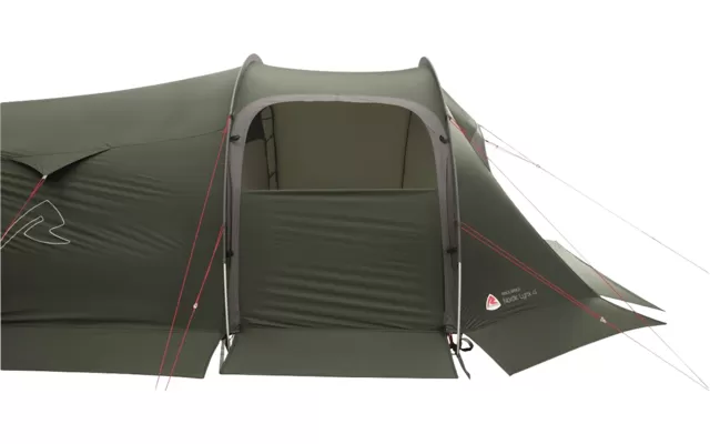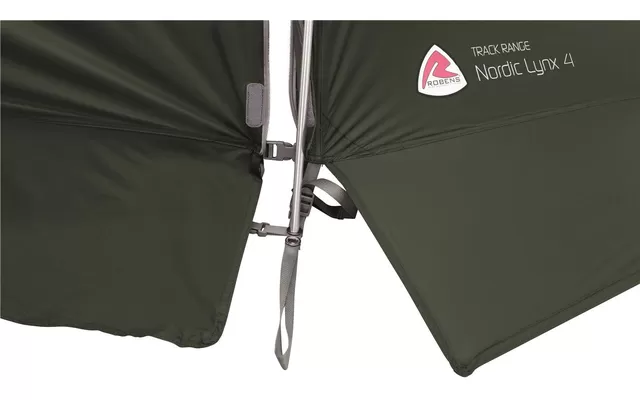 The tunnel tent Robens Nordic Lynx 4 for four people is designed for winter conditions. It is easy to pitch thanks to the large pole channels and long peg loops with additional guy lines and snow guards for added safety. The long zipper tags are easy to use even with gloves on.