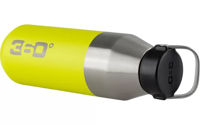 This slim double-walled drinking bottle allows you to enjoy hot or cold drinks on the go. The sturdy stainless steel handle is designed for optimal portability and can be easily attached to backpacks. The 360° stainless steel bottle is ideal for everyday use, camping, festivals or outdoor activities. Thanks to the flat design, the bottle fits into most common bicycle bottle racks.