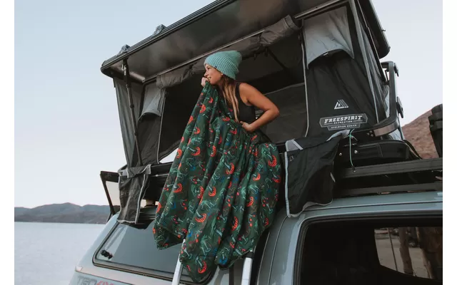 Juno can also be used as a picnic blanket or warming blanket around a campfire or in a cold sports stadium. The lightweight, warm and compressible eraLoft insulation, along with the soft brushed polyester lining and DWR-treated 30-denier polyester outer cover, make this our smallest functional blanket that can be taken anywhere. Measuring 183 x 114 cm and weighing 382 g, the blanket is large enough for most uses, yet still finds room in a daypack. Juno is ideal for all outdoor pursuits. It repels dirt, sand and water, dries quickly and is machine washable. The colorful blanket can even be worn around the shoulder with the help of a clasp.