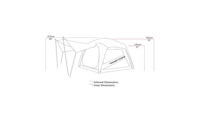 The inflatable poles allow the tent to be set up in minutes, while the included head poles maximize interior volume. The inner roof is made entirely of mesh, allowing warm air to escape and minimizing condensation. Depending on the weather, you can remove the outer tent, zipper up the side inner windows and enjoy the view of the starry sky.